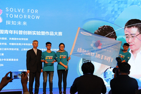 据悉,“SOLVE FOR TOMORROW探知未来2016年全国青年科普创新实验暨作品大赛”是由中国科协科普部、共青团中央学校部主办,中国科学技术馆、中国科协青少年科技中心承办,由中国三星独家赞助,中国青少年发展基金会独家公益支持,互动百科独家推广,大赛自2013年至今已延续四届,自今年7月底启动,历经线上初赛、五地复赛,获得了全国各高校及高中的积极响应和广泛参与。