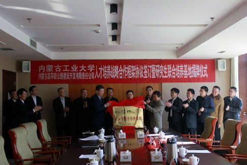 仪式上,刘进荣与明宏签订了人才培养战略合作框架协议;马万斌、明宏、刘进荣共同为研究生联合培养基地揭牌。明宏介绍了内蒙古高等级公路建设开发有限责任公司的概况以及培养基地建设意义。刘进荣在讲话中表示,“十三五”期间,国家和自治区的公路交通建设将有很大发展,为双方的发展和合作提供了机遇,学校将采取校企合作的方式,加快学科建设与发展,培养应用型、技术技能型人才,服务地方经济社会发展;共建研究生培养基地对于高校研究生培养工作具有重要意义,以研究生培养为纽带,促进产学研深度合作。
