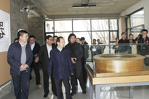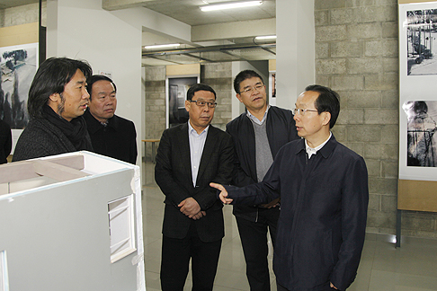 视察调研的最后一站是建筑馆。建筑学院张鹏举教授向曾一春一行阐释了利用旧厂房改建建筑馆的改造理念和建设过程,介绍了新建教学楼的功能。曾一春在视察过程中,进一步了解了建筑馆的建设风格、创意、理念,详细询问了建筑馆的结构、通风及建筑学院学科建设、专业设置的情况。