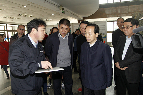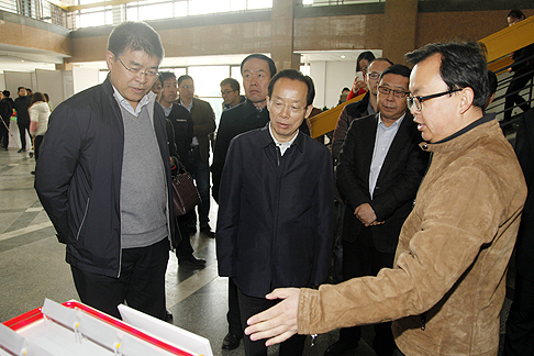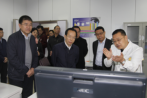曾一春一行还考察了化工学院的实验室和党员活动室。学院院长韩利民教授介绍了新建实验室科研仪器设备的应用范围,及其对学校相关学科专业教学、科研做出的贡献。曾一春高度肯定了先进仪器对科技创新、科技进步的支撑作用。在化工学院党员活动室,学院党委书记云占平介绍了学院党委的基本情况和活动室使用情况。曾一春进一步询问了学生党员比例、支部书记选配、“三会一课”开展情况等,查看了化工学院各级党组织党建工作档案材料。