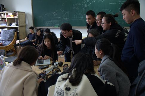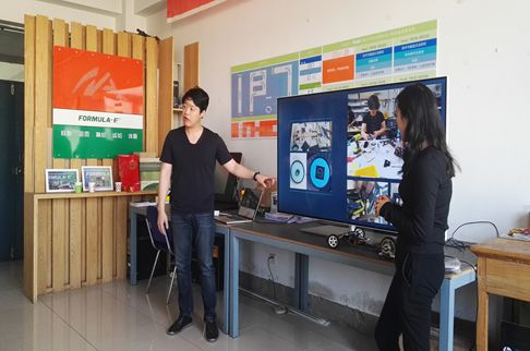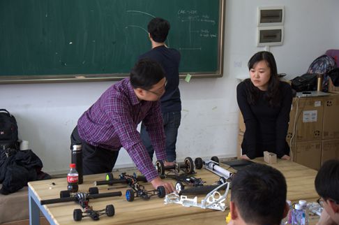 廖伟和于兰分别介绍了FE弹力方程式赛车国际设计锦标赛历史背景、发展脉络、在国内外创新人才培养方面取得的成果等,并对内蒙古工业大学MA车队在近几年国内赛事中的表现和同学们的创新能力给予了充分的肯定。两名美国Art Center冠军队队员分别介绍了参加国际赛事的经验和体会,并和MA车队的队员就弹力赛车的设计与制作、战略选择、团队协作等问题进行了深入细致的探讨。崔明焕同学为大家展示了冠军车队弹力赛车的结构和设计,MA车队的队员们针对相关问题进行了提问,同学们还观看了冠军车队的现场演示。