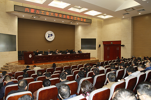 3月24日下午,内蒙古工业大学安全稳定工作会议在新城校区教研楼召开。会议传达了李纪恒书记关于安全生产工作重要讲话和指示精神、《内蒙古自治区人民政府办公厅关于认真贯彻落实全国安全生产电视电话会议精神进一步深化全区安全生产大检查的通知》,通报了全区学校安全稳定工作会议精神,并对我校安全稳定工作进行全面部署。校党委书记金瑞,校长邢永明,校党委副书记、纪委书记刘志雄,副校长刘进荣、黄龙海、峻峰出席,全体副处级以上领导干部,各学院实验中心负责人、实验管理工作人员,各学院团委(团总支)书记、学工办主任,两校区学生公寓管理中心主任、公寓办主任,后勤管理处饮食服务中心负责人、幼儿园园长等240余人参加会议。
