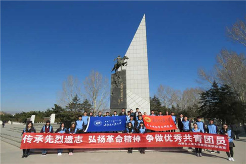 在大青山革命烈士陵园,校团委组织学生会、社团联合会、青年志愿者协会、学生理论研究会等学生组织共300余名志愿者向革命烈士默哀致敬、敬献花束,进行“英雄的信仰”主题演讲活动,共同缅怀先烈们英勇无畏的革命精神;化工学院团委组织团员青年纪念舍己救人英雄池明明,同学们讲述池明明生前事迹,在池明明雕像前鞠躬默哀、点燃手中的蜡烛,在“清明寄语”留言板上写下对英雄学长的追思;材料学院团委组织青年志愿者祭扫大青山烈士陵园,志愿者们在纪念碑前集体宣誓、敬献花圈,在烈士纪念馆大家回望历史,感受革命的艰辛,立志继承发扬中华民族优良传统;机械学院团委组织100余名学生干部分别在乌兰夫纪念馆和多松年烈士故居举办“饮水思源 祭奠先烈活动,一同追忆革命先烈的丰功伟绩,学习革命先辈精的神意志;矿业学院团委组织50余名青年志愿者参加内蒙古老兵会举办的清明扫墓活动,共同向烈士墓敬献胸花、默哀致敬,聆听老兵们讲述英雄先烈的感人故事;土木学院、信息学院、外国语学院、人文学院、国际商学院、能动学院等团组织先后开展了“纪念先烈 报效祖国 圆梦中华”祭英烈活动。