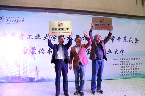 雷蒙代表“雷蒙读书会”向图书馆馆长郭俊平和管理学院党委书记王利明授牌,标志着“读书驿站”在我校正式成立。