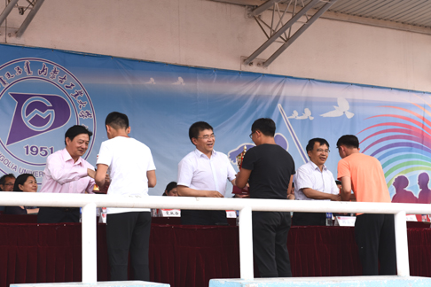519日下午,内蒙古工业大学2017年田径运动会在新城校区体育场圆满落幕,校党政领导金瑞、邢永明、刘进荣、栗文义、峻峰出席闭幕式。副校长刘进荣教授致闭幕词,校领导为获奖代表队和选手颁奖。党政办公室主任孙志强主持闭幕式。
