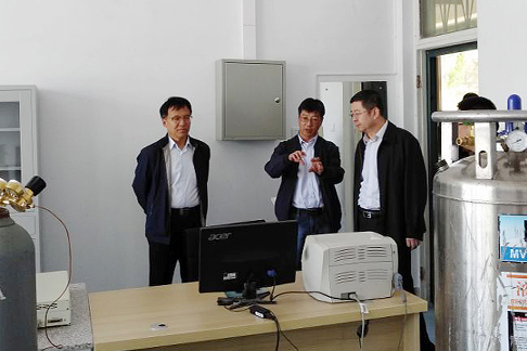 座谈会后,邢永明陪同蔺建成一行参观了内蒙古自治区雷达技术与应用重点实验室和化工学院X-射线光电子能谱室等实验室。