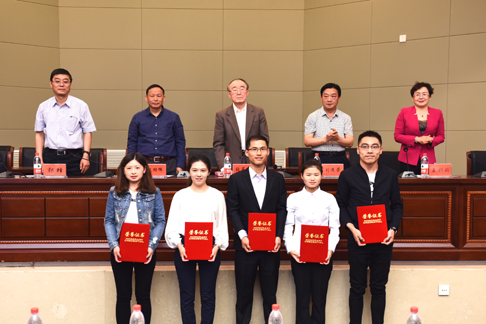 陈玉宏介绍了张晨鼎奖励基金管理办法;郭锋宣读获得张晨鼎奖励基金优秀研究生表彰决定;主席台就坐嘉宾为获奖研究生颁奖。