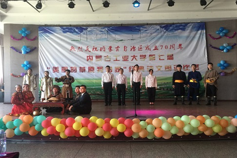 本次比赛经过一个多月的筹备和初选,共有来自14个学院代表队的300余人参加决赛。决赛中,同学们深情委婉、高亢有力地朗诵了《相约去草原》《美丽的草原我的家》《瀚海赞歌》《草原赞歌》等诗文作品,并配以丰富的音乐及生动的舞台表演。经过激烈角逐,矿业学院的作品《心系草原》获得一等奖;土木学院的作品《魅力内蒙古》、化工学院的《福佑草原,七十礼赞》获得二等奖;轻纺学院的《不忘故乡根,诉说草原情》、商学院的《草原赞歌》、能动学院的《梦中的草原》获得三等奖。
