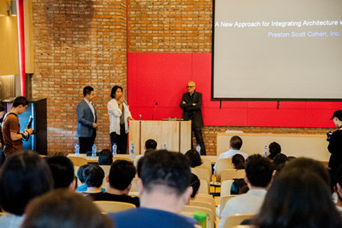讲座中,科恩教授例举了美国密歇根大学建筑系新楼、以色列特拉维夫艺术博物馆、太原美术馆、安徽省科技馆、山西大学东山校区等建筑,这些建筑以全新的设计理念、新颖的几何创意效果、建筑与环境融为一体的方法设计著称。科恩教授认为,对于建筑师,能够更好地去探究建筑与环境、建筑与人的关系,从建筑使用学角度去实现更有意义,提升建筑空间的品质和氛围是最好的设计方式。