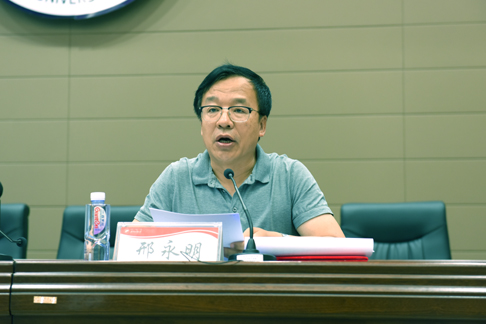 7月13日上午,我校思想政治工作会议暨思想政治教育研究会2017年年会在教研楼一号报告厅举行。会议深入学习贯彻全国全区思想政治工作会议精神,特别是习近平总书记重要讲话精神,全面贯彻落实《中共中央国务院关于加强和改进新形势下高校思想政治工作的意见》,分析面临的新形势新问题,部署了当前和今后一个时期的工作,为建设国内知名、民族地区一流的教学研究型大学提供了强大动力和根本保障。校党委书记金瑞作题为《认真学习贯彻习近平总书记重要讲话精神,不断提升学校思想政治工作水平》的重要讲话,校长邢永明宣读优秀论文表彰决定,校党委副书记、纪委书记刘志雄主持会议并作会议总结。校领导黄龙海、栗文义、峻峰出席会议。全体副处级以上干部(含非领导职务人员),党政办、组织部、宣传部、纪委办公室、团委、研究生工作部、学生工作处、招生就业处全体工作人员,各学院团委(团总支)书记、学工办主任、就业办主任;辅导员班主任代表,思想政治理论课教师代表,教学教辅单位、教工党支部书记、系(部)主任代表参加会议。