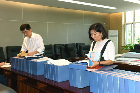 座谈会后考评组一行观看了我校文明校园创建的影像资料和学校网络媒体的展示,并认真查阅了纸质档案。