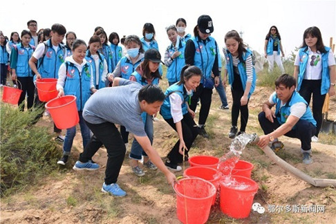 828日,由鄂尔多斯团市委,鄂尔多斯市恩格贝生态示范区党工委、管委会共同举办的“《联合国防治荒漠化公约》第十三次缔约方大会青年志愿者防沙治沙植树活动暨鄂尔多斯市青年志愿者服务基地揭牌仪式”在恩格贝生态示范区举行。我校外国语学院青年志愿者代表参加揭牌仪式,并与来自北京第二外国语学院等高校的270多名青年志愿者代表参加植树志愿服务活动。