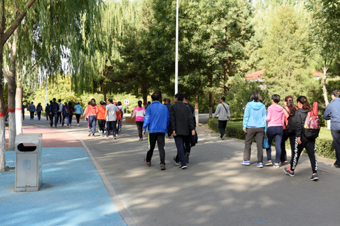 活动设在公园内,行程路线全长7公里,时间持续3小时左右。教职工们身穿运动服,行走在绿色与鲜花点缀的大道上,边行走边交谈,时而合影留念,一路上充满欢声笑语,形成了公园秋季一道靓丽的风景线。