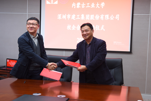 签约仪式上,副校长刘进荣致欢迎辞,并简要介绍了内蒙古工业大学的办学整体概况和历史发展沿革,他希望借助此次与深圳市建工集团股份有限公司签订校企合作协议的契机,在人才培养、青年教师实践锻炼、科研成果转化、毕业生就业等方面进一步加强学校与企业的交流与合作,不断提升学校的办学水平。深圳市建工集团股份有限公司常务副总裁杨有明、党委书记葛咸华分别就企业的基本概况,与我校开展的各方面合作规划,以及企业对专业人才的需求情况等进行了介绍。刘进荣与杨有明代表双方签订了《内蒙工业大学—深圳市建工集团股份有限公司校企合作框架协议》,按照合作协议,我校将与深圳市建工集团股份有限公司在联合开展课题研究、实习实践基地建设、青年教师实践锻炼、毕业生就业等方面开展更加深入的合作。