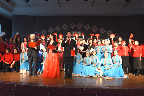 联谊会在老同志们的舞蹈《祝酒歌》中拉开序幕。离退休人员演唱了《毛委员和我们在一起》《歌声与微笑》《新年好》;老教授协会带来了小合唱《呼伦贝尔大草原》《友谊地久天长》;老年模特队表演了T台走秀《风含情,水含笑》。