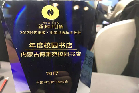 近日,由中国书刊发行业协会主办的“‘新时代杯’2017时代出版•中国书店致敬盛典”在北京举行。我校图书馆与内蒙古图书大厦合作建立的“内蒙古博雅苑校园书店”获“2017年度校园书店”荣誉称号。
