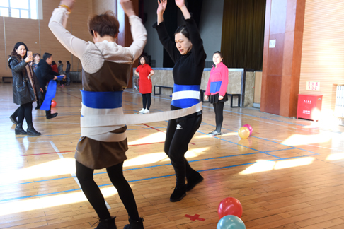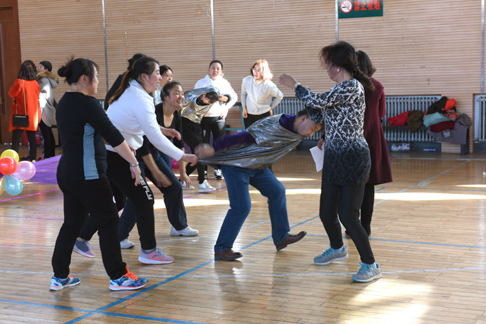 拓展游艺活动包括协力运球、神笔马良、魔术换衣和转布带四项,活动以各分会为单位,分别派出8名女教职工和2名男教职工,通过集体参与各项活动,决出一、二、三等奖。教职工们参与活动热情高涨,通力合作完成了所有妙趣横生的游艺项目,展示了团队风采和凝聚力,度过了一个快乐、难忘的节日,整场活动在教职工的欢声笑语中圆满结束。