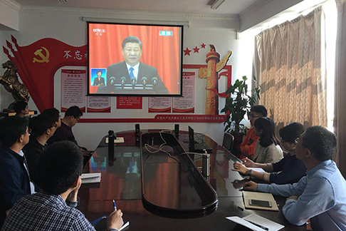 各收听收看现场气氛热烈,秩序井然,每位领导、党员、教师、学生都聚精会神,共同凝望同一个画面,共同倾听同一个声音,不时为习近平总书记的讲话所启迪、所感染、所打动。