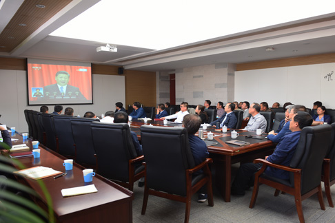 上午10时,全体校领导,各学院党委、机关党委、各党总支书记,各职能部门、教学教辅单位主要负责人,教师代表、学生党员代表在新城校区教研楼205会议室集体收看了纪念马克思诞辰200周年大会实况直播,认真聆听了习近平总书记在纪念大会上发表的重要讲话。