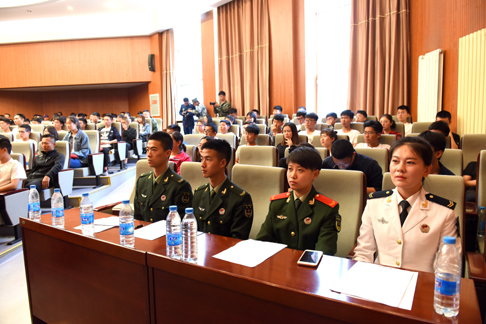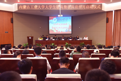 5月10日下午,我校在新城校区图书馆报告厅举行2018年大学生征兵暨征兵宣传月启动仪式。我校征兵工作领导小组副组长、副校长黄龙海中国人民解放军93502部队群联办副主任张红艳呼和浩特市新城区人民武装部政委任东东,以及我校征兵工作领导小组成员党委学生工作部、教务处、招生就业处、校团委负责人出席会议各学院分管学生工作的领导、辅导员两校区学生代表和我校大学生军事爱好者协会成员参加会议。