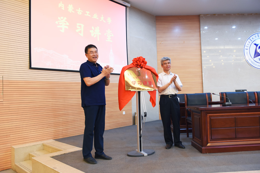 会议对全校党员干部进一步深入学习贯彻党的十九大精神专题培训进行了部署。校党委宣传部部长韩伟新宣读《关于成立内蒙古工业大学“学习讲堂”的通知》。金瑞、刘志雄为“学习讲堂”揭牌。
