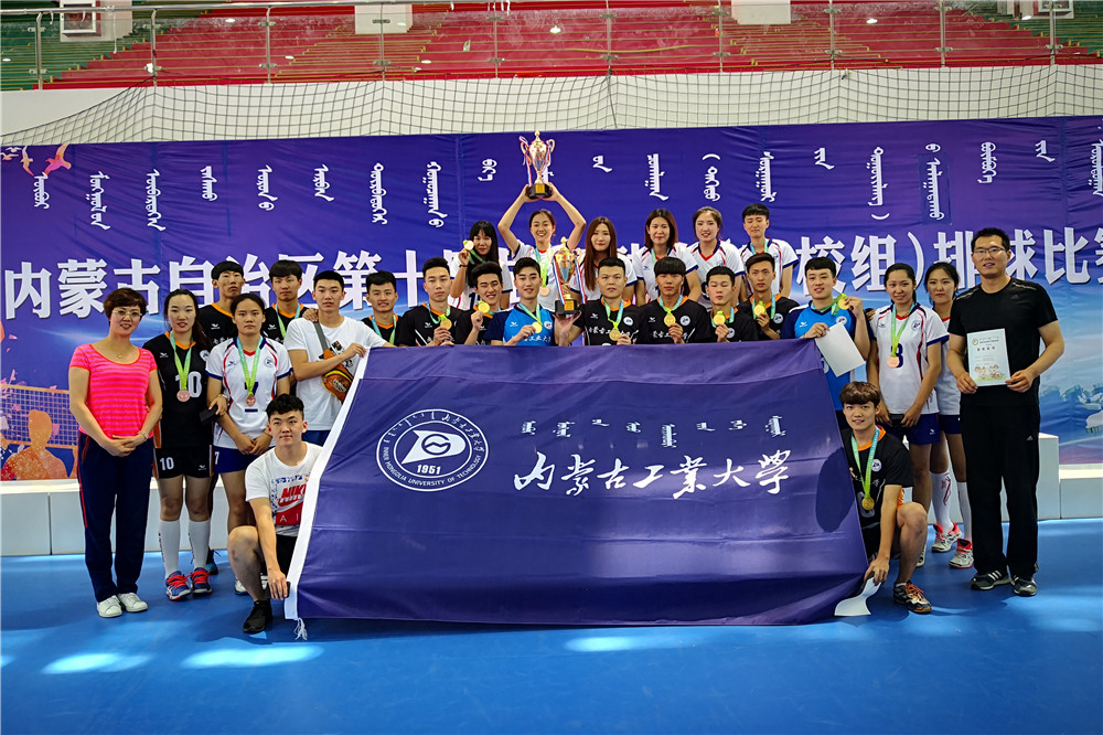 6月9日至17日,由内蒙古自治区人民政府主办,自治区体育局和乌兰察布市人民政府承办的自治区第十四届运动会排球比赛(高校组)在乌兰察布市举行,来自全区12所高校的19支男女代表队参加比赛。比赛中,我校男排团结协作、敢打敢拼,一路过关斩将,以全胜战绩蝉联本项赛事冠军,我校女排获得季军。