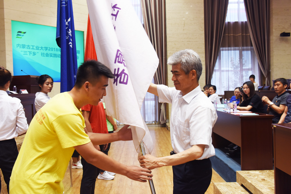 刘志雄为我校2018年暑期“三下乡”社会实践活动校级直属队、学院重点队授旗并讲话。刘志雄强调,“三下乡”社会实践活动作为高校大学生实践教育体系的重要组成部分,各相关单位要高度重视,从覆盖面、抓实效等方面充分调动广大青年学生积极参与,扎实开展好社会实践;各相关单位、指导教师要树立高度的安全意识做好安全预案,确保实践活动安全有序开展希望同学们在实践活动中,虚心向人民群众学习,脚踏实地,勤思多问,发挥专业优势,把自己的专业知识、昂扬向上的精神风貌传播到群众中,在自身得到锻炼和成长的同时,为地方经济社会发展做出应有贡献。