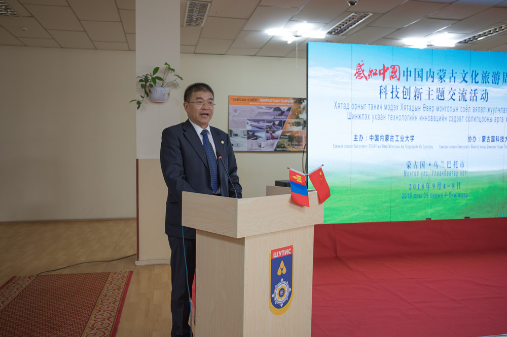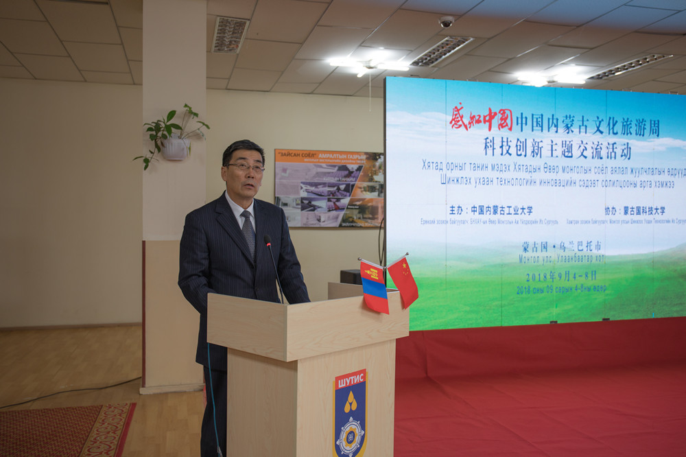 9月6日下午,“感知中国”——中国内蒙古文化旅游周科技创新主题交流活动开幕式在蒙古国科技大学图书馆报告厅举行。