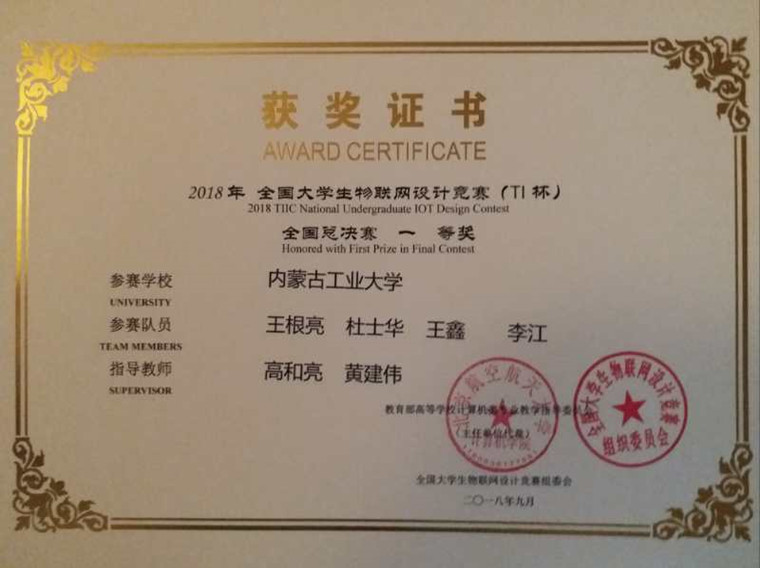 9月15日,2018年全国大学生物联网设计竞赛(TI杯)全国总决赛在江苏省无锡市开赛。我校信息工程学院高和亮、黄建伟老师指导,王根亮等同学完成的《Cloud Aquarium-云水族》荣获全国一等奖;张占强、贾晓强老师指导,郭兴宸等同学完成的《数据中心微环境监测系统设计》荣获全国三等奖。