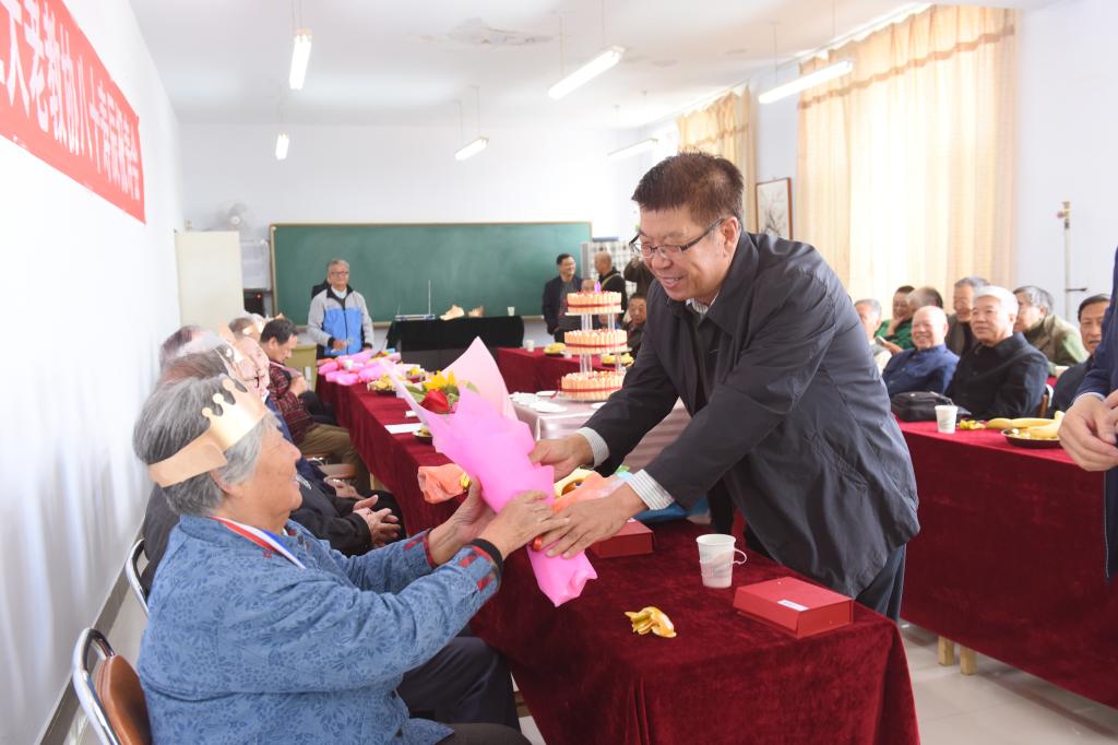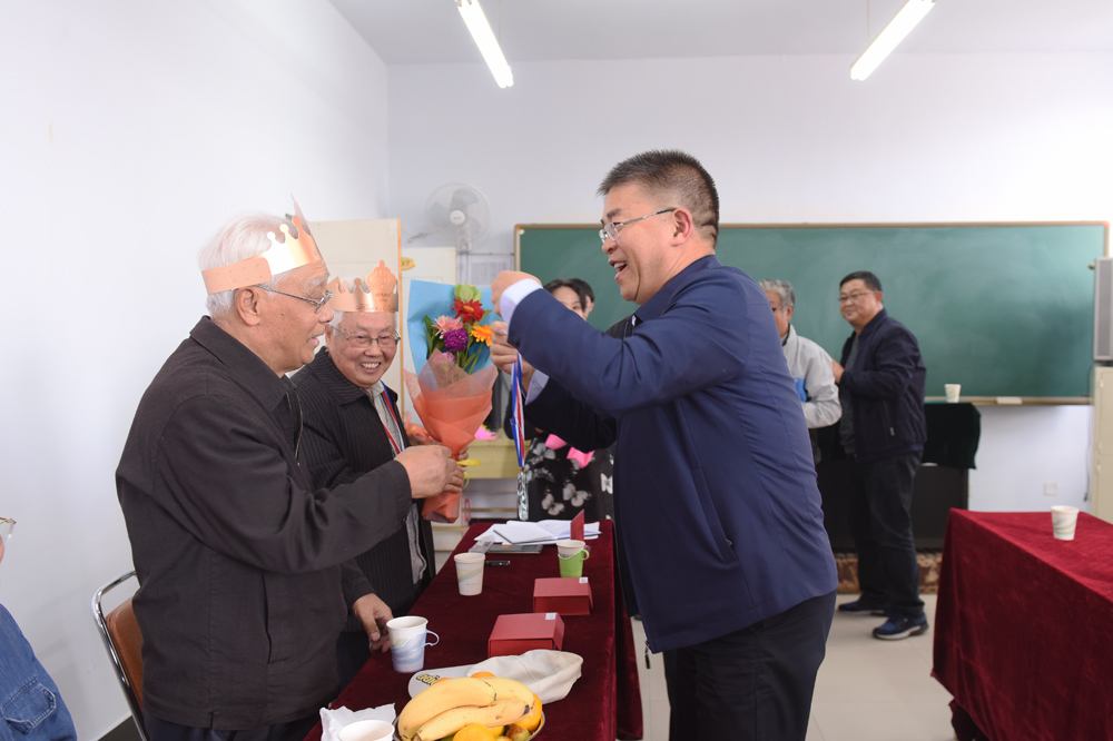 金瑞和黄龙海为老教授们颁发耄龄逢盛世老当益壮纪念牌并与老教授合影留念。