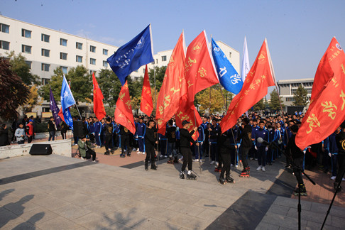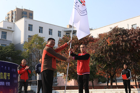 开幕式上,校团委副书记金燕飞致辞。她指出,体育节是我校贯彻落实《中共中央国务院关于加强青少年体育增强青少年体质的意见》,深入推进团中央“三走”活动的生动实践希望同学们把体育锻炼作为日常生活的一部分,锻炼坚强意志,塑造健全人格,磨砺奋斗精神,养成坚韧不拔、团结友爱、勇于拼搏、开拓进取的精神品质,成长为德智体美劳全面发展的社会主义建设者和接班人,为实现中华民族伟大复兴的中国梦贡献力量。体育教学部主任荀盛龙为学生代表授予第二十四届体育节会旗校学生会学生代表宣读倡议书,裁判员代表进行宣誓。