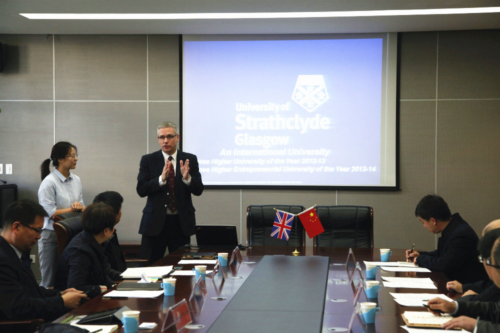 11月2日,英国思克莱德大学工程学院副院长Andrew McLaren博士访问我校。我校副校长成涛国际合作交流处负责人接待来访。