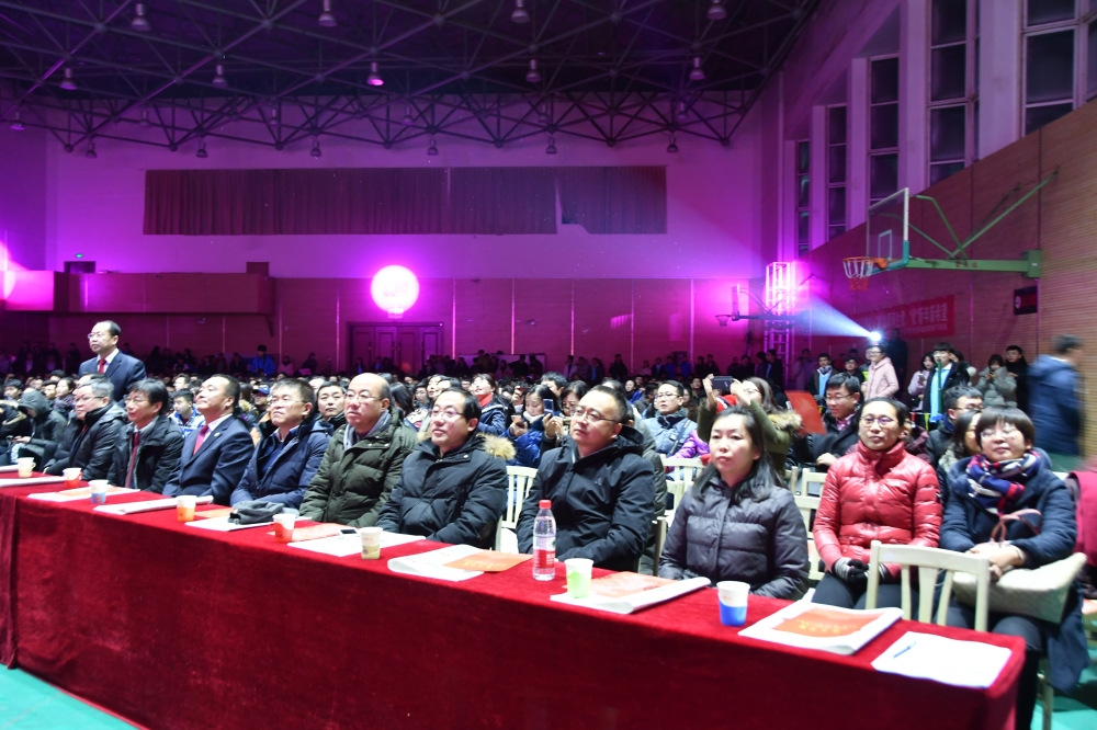 为庆祝改革开放40周年,深入贯彻落实习近平新时代中国特色社会主义思想和党的十九大精神,教育和引导广大青年学生爱国、担当、奋斗,争做担当民族复兴大任的时代新人12月27日晚,我校化工学院新城校区文体馆举办首届“融·化”师生文艺晚会校党委书记金瑞部分职能部门负责人化工学院全体师生观看晚会。