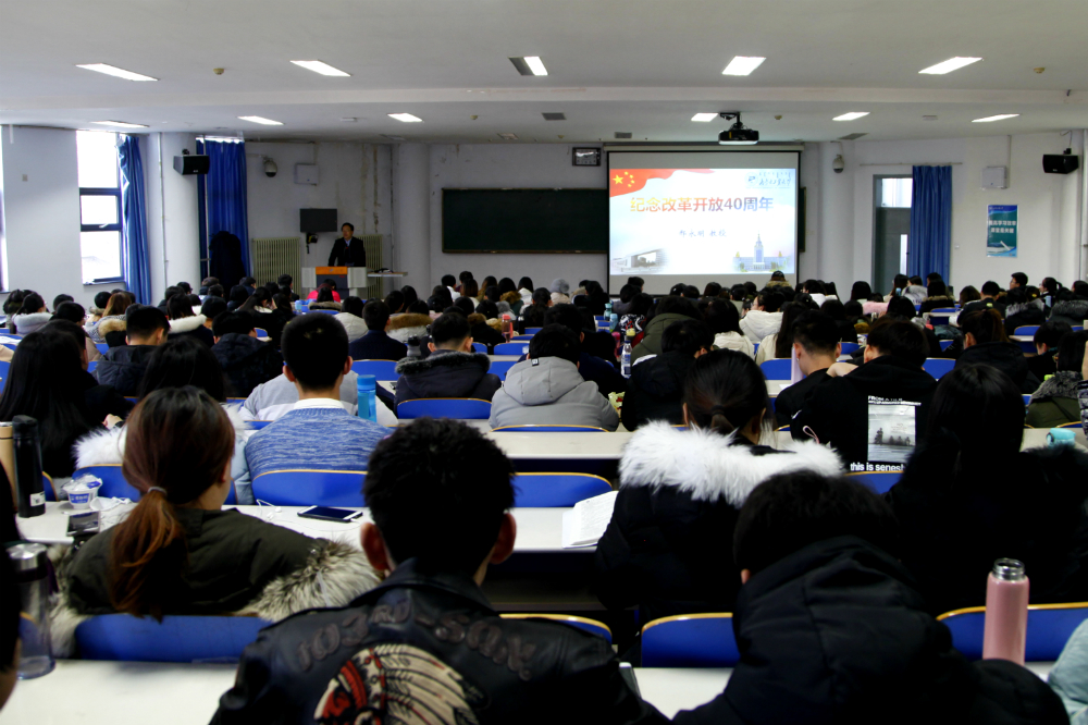2019年1月3日上午,邢永明在第四教学楼第一报告厅为2016级人力资源管理、会计学、国际经济与贸易及金融学四个专业本科生讲授了形势与政策课。他以“庆祝改革开放40周年”为题,以自己在工大求学、自身工作经历为切入点,以我校40年的建设发展为主线,讲述我国改革开放40年来的艰辛历程及取得辉煌成就。他指出在人类文明的历史长河中,40年不过弹指一挥间,但对于我国发展而言,这40年的变革则具有里程碑式的意义。40年来,我们解放思想、实事求是,大胆地试、勇敢地改,干出了一片新天地,各项事业取得长足发展,使改革开放成为当代中国最显著的特征、最壮丽的气象。与此同时这40年,也是我们学校获得快速发展的40年,我们是改革开放40年伟大历程的参与者、实践者、受益者。40年来,我国高等教育由精英化走向大众化,教育的每一步变迁,都是中国改革开放交响乐中不可或缺的音符。最后他对在场同学提出几点要求,希望他们谨遵习近平总书记在北京大学师生座谈会上对广大青年学生提出的“爱国、励志、求真、力行”殷切希望,要忠于祖国,忠于人民;要立鸿鹄志,做奋斗者;要求真学问,练真本领;要知行合一,做实干家,争做德智体美劳全面发展的社会主义建设者和接班人。课堂讲述饱含深情,同学们积极思考,主动回应,课堂上不时响起热烈掌声。