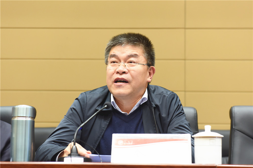 副校长成涛对2018年度院处级领导班子和领导干部工作实绩考核及述职评议有关工作进行部署说明。重点从制定背景和相关依据、考核原则与要求、组织领导体系、考核内容和指标体系、考核方式方法、考核结果运用等方面对考核方案进行说明。并对述职评议准备阶段侧重点及内容提出明确要求,强调了考核及述职评议结果的重要性。