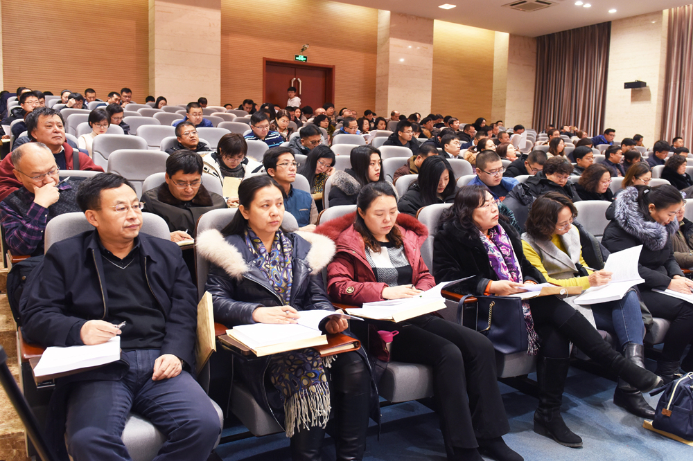 1月14日全天、15日上午,我校在新城校区教研楼第一报告厅召开2018年度院处级单位述职评议大会。22位分党委、党总支书记,19位教学、教辅单位主要行政负责人,26位党政职能部门主要负责人就2018年度整体工作情况进行述职。校党委书记金瑞、校长邢永明作点评讲话。全体参会人员在认真查阅书面述职报告、听取述职后,现场填写评议测评表。全体校领导,全校副处级以上干部,各教学单位基层党务工作者、党代表、各系(部、中心)主任代表,各职能部门、教辅单位科级代表,学生代表等240余人参会。校党委副书记铁勇主持14日会议,校长邢永明主持15日上午会议。