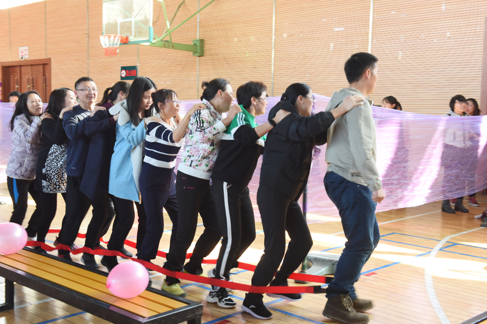 为庆祝新中国成立70周年喜迎“三·八”国际劳动妇女节,营造轻松愉快、健康向上的节日氛围3月7日下午,学校在新城校区文体馆举办“庆祝新中国70华诞、喜迎三·八国际劳动妇女节”大型拓展游艺活动。全校320余名女教职工和部分男教职工参加活动,校党委副书记铁勇到场观看游艺活动并广大女教职工送上节日祝福