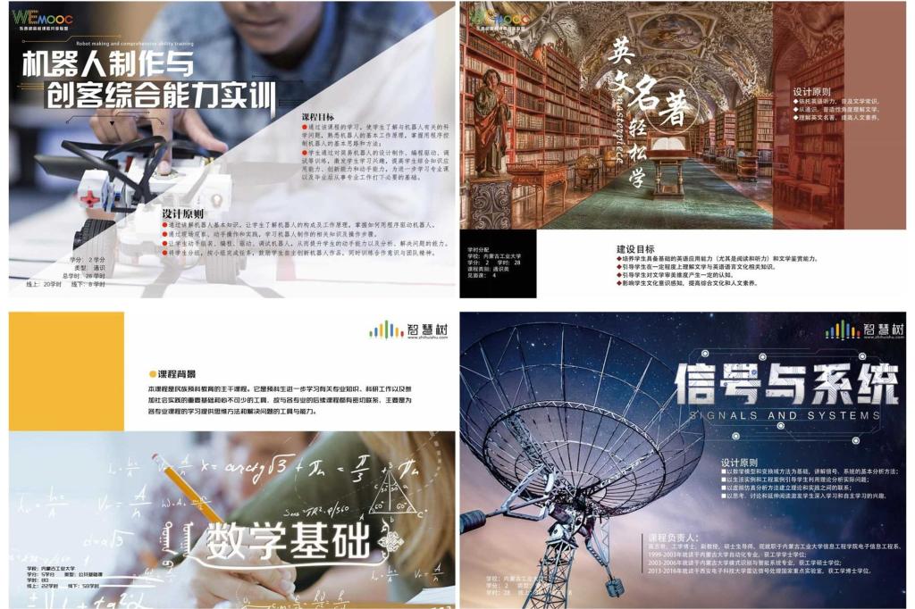 首批上线的11门在线开放课程包括机械工程学院裴承慧老师负责的《开心学UG·轻松做设计》、材料科学与工程学院苏娟老师负责的《金属学与热处理》、理学院杜云刚老师负责的《走近科技——大学生创新实践》、外国语学院田忠山老师负责的《英文名著轻松学》、轻工与纺织学院史慧老师负责的《非遗传承——蒙古族服饰文化之旅》、工程训练教学部贾翠玲老师负责的《机器人制作与创客综合能力实训》、信息工程学院高志奇老师负责的《信号与系统》、理学院云银山老师负责的《数学基础》、经济管理学院郭婷老师负责的《“小白喵”到“注会狮”的进阶之路》、人文学院文宗川老师负责的《创新之术——TRIZ理论》和工程训练教学部徐明娜老师负责的《电工电子技术应用与实践》。11门在线开放课程中既有展现我区民族地域特色的通识类课程,也有凸显我校学科特色的专业课和基础课。这些课程的建成,标志着我校慕课建设和线上线下混合教学模式改革方面取得突破性进展,必将对后续课程建设提供良好的示范引领和带动作用。