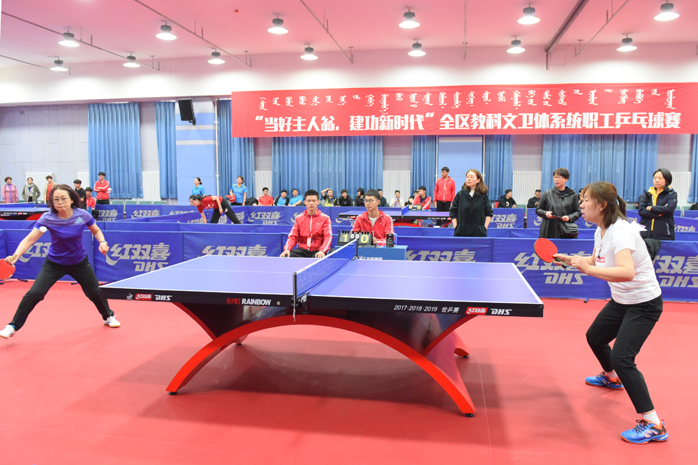 3月16日至18日我校承办“当好主人翁建功新时代”全教科文卫体系统职工乒乓球赛在新城校区体育馆举行。来自全区高等院校、盟市教科文卫体工会等单位的23支代表队参赛。