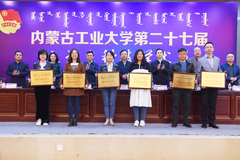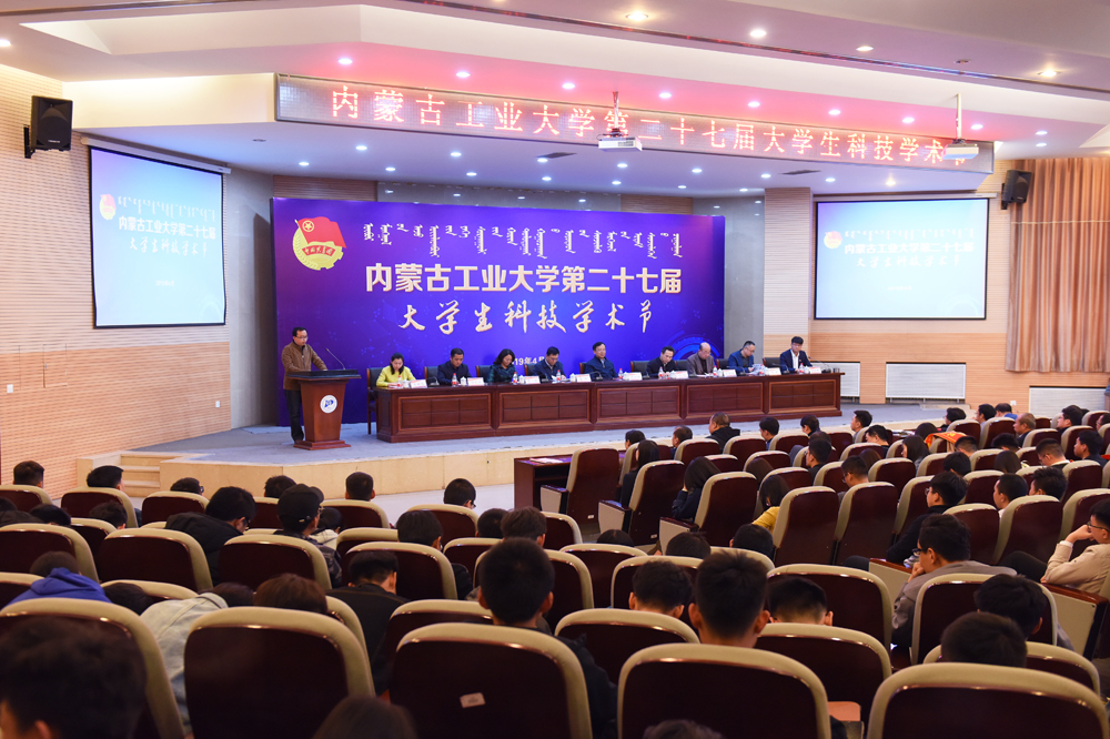 开幕式前,参会师生共同参观大学生科技创新项目成果展。开幕式上,播放我校第二十七届大学生科技学术节宣传片,校团委书记金燕飞介绍本次科技学术节期间校院两级科技活动的具体安排。峻峰宣读《关于表彰内蒙古工业大学第六届“校园科技明星”、大学生科技创新活动“优秀指导教师”、“优秀项目团队”、“优秀组织单位”的决定》《关于成立内蒙古工业大学大学生科技创新专家库的决定》,并对获奖的优秀集体、学生和教师进行表彰。邢永明为大学生科技创新首批专家库教师颁发聘书。优秀指导教师代表能源与动力工程学院常泽辉老师学生代表建筑学院贾宇迪同学分别发言。