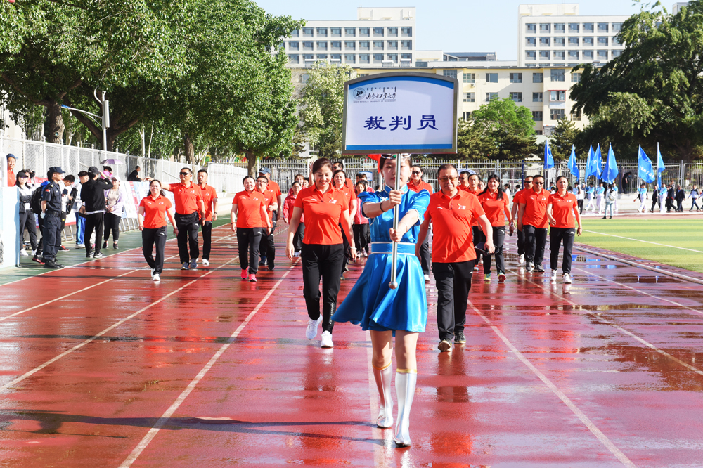 邢永明致开幕辞,向全体运动员和参与筹备工作的全体师生致以亲切的问候。他指出,在全国教育大会上,习近平总书记深刻指出,“要树立健康第一的教育理念,开齐开足体育课,帮助学生在体育锻炼中享受乐趣、增强体质、健全人格、锤炼意志。”长期以来,学校高度重视体育工作,始终将体育作为人才培养工作的重要组成部分,坚持以师生为中心的体育理念,把满足师生健身需求、促进师生全面发展作为体育工作的出发点和落脚点。学校积极搭建师生运动交流平台,开展丰富多彩的体育文化品牌活动,形成了“全年不断线”的群众体育竞赛体系,赛事数量、类型、参与人数在自治区高校中均居前列;加强体育基础设施建设,新城校区体育馆投入使用,金川校区体育馆、新城校区足球馆等项目即将开工建设。我们欣喜地看到,加强体育锻炼,磨练意志品质,已然成为师生员工生活中的重要组成部分,操场上、体育馆内到处都是师生挥汗如雨的身影。