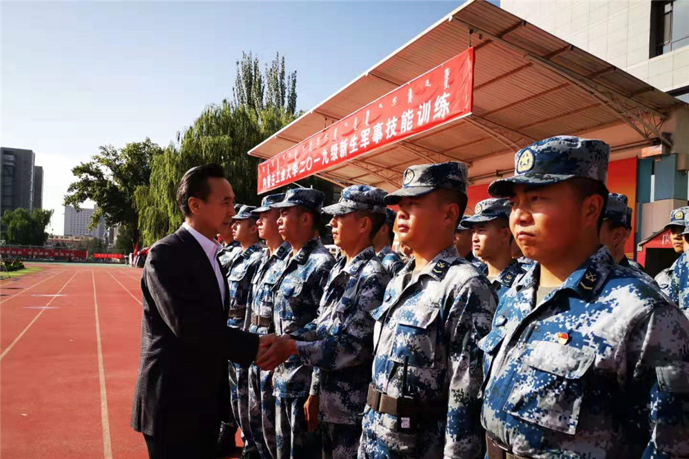 9月13日,中秋佳节之际,我校党委副书记铁勇前往新城、金川两校区军训现场代表学校看望并慰问了2019级新生军训教官、老师以及新生。