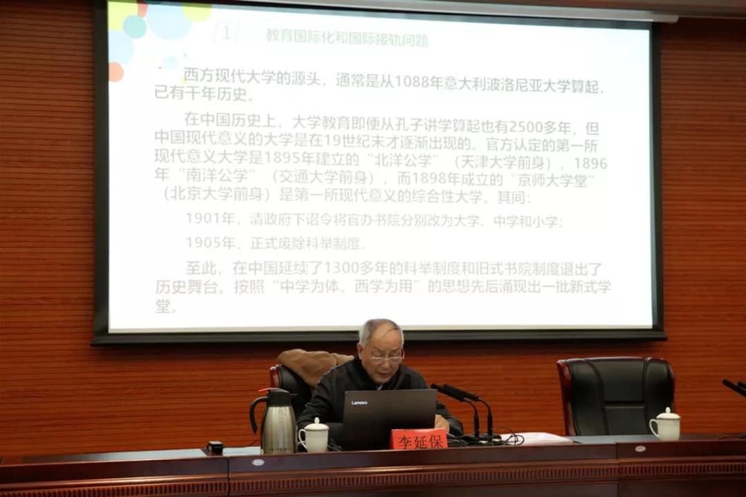报告会上,李延保教授围绕“深入贯彻党委领导下的校长负责制,推动实现高等教育高质量发展”主题,从教育国际化和国际接轨问题、对“党委领导下的校长负责制”理解的深化等两个方面对党委领导下的校长负责制的法理依据和学理基础及如何理解把握党委对学校全面工作负总责等问题做了深入浅出的阐释。并结合丰富的案例和深邃的理论思考,对“教授治校”还是“教授治学”、“去行政化”还是“去官本位”、大学文化和大学精神等大学治理和现代大学制度建设的几个核心问题谈了自己的看法。他认为,实践表明,各高校应积极推行“政务公开、群众参与、教授治学、民主治校”,实现全体大学人的共同治理,形成充满活力的大学“学术共同体”;大学内部治理中行政工作的关键是制度创新和精细化管理;大学文化建设必须和现实改革、发展紧密结合,凝练共同价值取向,形成学校办学特色和文化传统;大学精神的核心是办学理念和价值追求,这也是大学制度建设及学校治理之魂。李延保教授强调,加强高校党委自身建设,提升领导现代大学能力是完善党委领导下校长负责制的重要基础,党政班子建设是大学治理的重要组成部分,也是大学制度建设的基本保证。各高校应回归初心,坚持立德树人根本任务,高度重视教育教学质量监控和保障体系建设,积极应对未来教育的重大变革,办好中国特色社会主义大学。