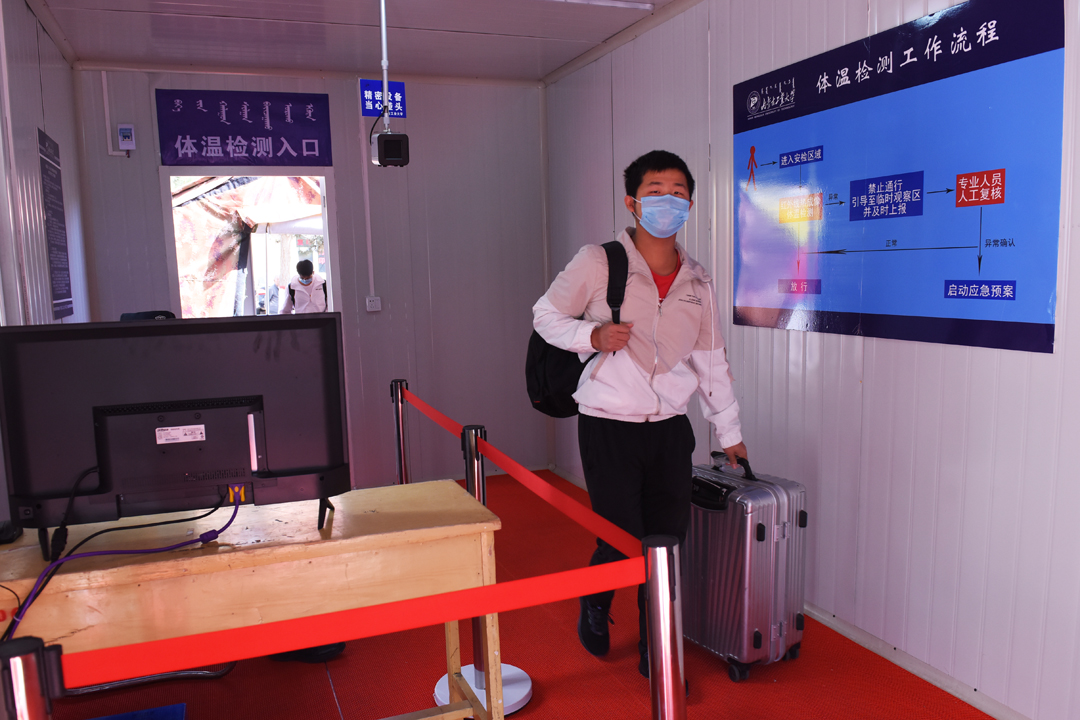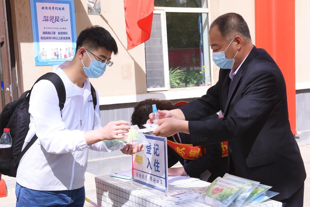 相关职能部门负责人、辅导员、工作人员等早早等候在站点、校门和公寓,严格按照返校工作方案和前期演练流程坚守各个关卡”,对返校同学进行行李消毒、身份核验、体温检测、登记入住一系列程序在老师们的引导下,同学们有序返校入住