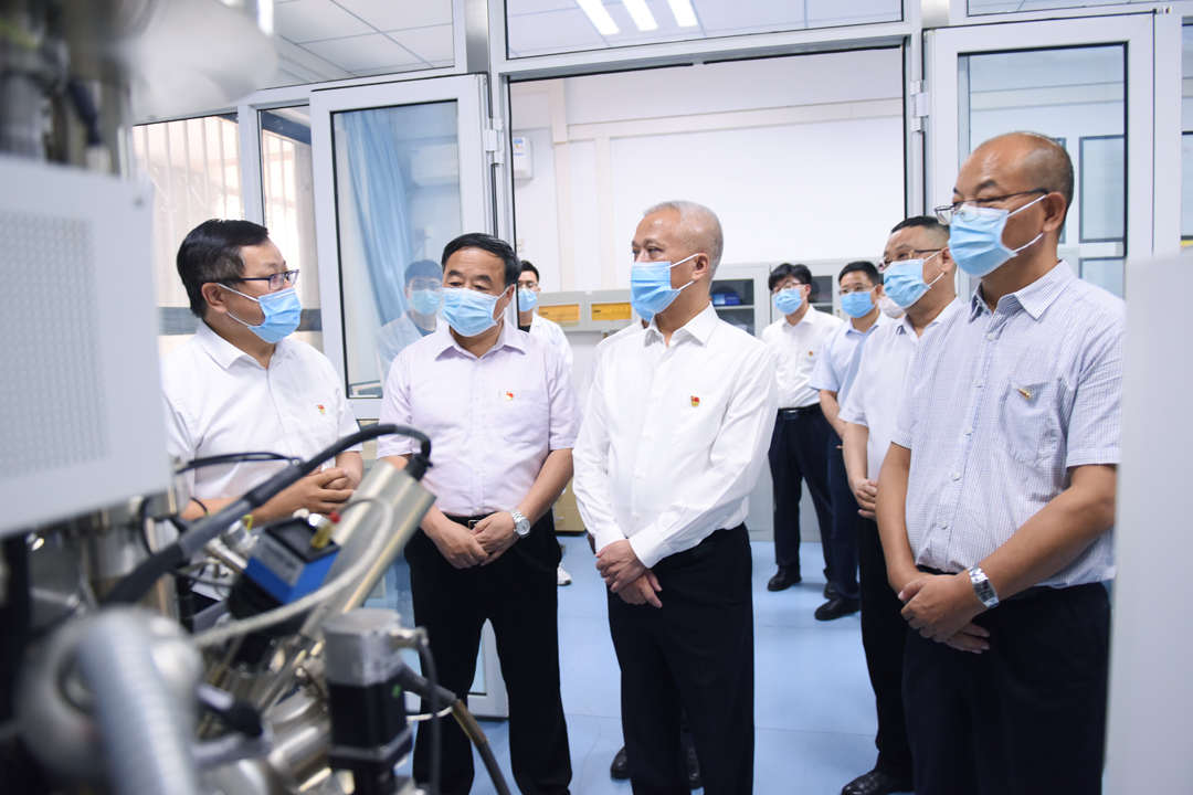 杨伟东一行来到化工楼。刘志彧、姚德简要介绍了我校的发展历程以及学校在党的建设、学科建设、科学研究、开放办学、师资队伍、人才培养等方面取得的成绩。杨伟东听取了化工学院党委书记王凯关于学院党员活动室建设使用、以党建促发展取得多项教学科研成果的情况介绍;实地了解了全国“双带头人”教师党支部的建设发展情况,支部书记张建斌教授详细介绍了党支部成员坚持“以党建促业务,以发展强党建”取得各级各类学术成果的情况;参观了分析测试中心,看望了实验室科研人员。听取了学院副院长白杰教授关于X射线光电子能谱仪、X射线单晶衍射仪等大型设备工作原理和使用现状介绍,观看了学院参与研发的神华集团“煤制油”直接液化工业化装置模拟沙盘和学生自主完成的水泥厂工艺设计作品模型。杨伟东指出,要不断加大科研支持和应用转化力度,发掘培育青年骨干力量,为高校教学、科研、管理储备力量,为自治区经济高质量发展提供智力支撑和技术保障。