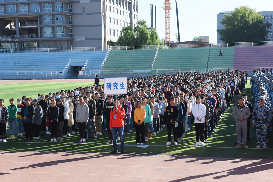 典礼伊始,全体师生面向国旗奏唱国歌,并为89年前殒命日寇铁蹄之下的无数同胞、革命先烈默哀一分钟,警醒大家勿忘国耻、居安思危、珍爱和平。