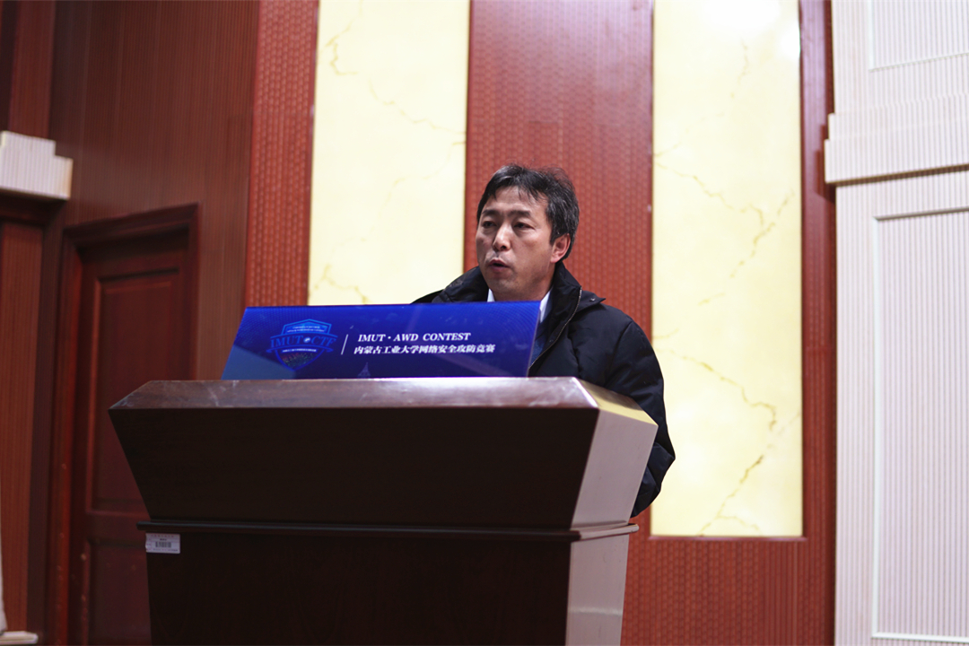 副校长韩永全在颁奖典礼中致辞,他希望同学们把竞赛视为一个交流学习经验、检验学习成果、建立合作友谊的平台,通过竞赛锻炼自己,以赛助学,以学促用,为网络安全行业发展贡献应有的力量。