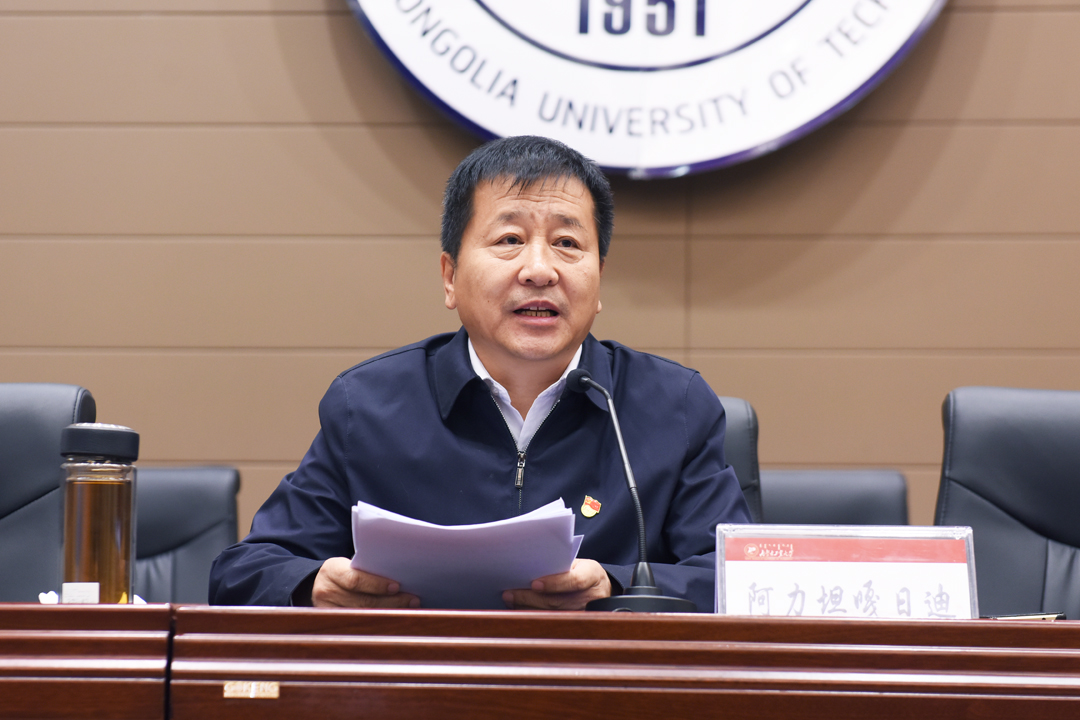阿力坦嘎日迪围绕中国共产党正风反腐历程回顾、深刻认识当前正风反腐的形势、扎实推进学校正风反腐取得新成效三个方面进行了详细的讲解,针对学校下一步落实全面从严治党工作的思路提出了要求。一是强化政治修养,筑牢思想防线。二是强化担当作为,正确履行职权。三是强化纪律意识,严守廉政底线。他指出,学校纪委要科学运用“四种形态”,以“四种形态”衡量监督执纪的效果,进一步转变监督理念;以“四种形态”优化纪律审查的运行,进一步创新方式方法;以“四种形态”推动监督模式的优化,进一步探索履责路径。
