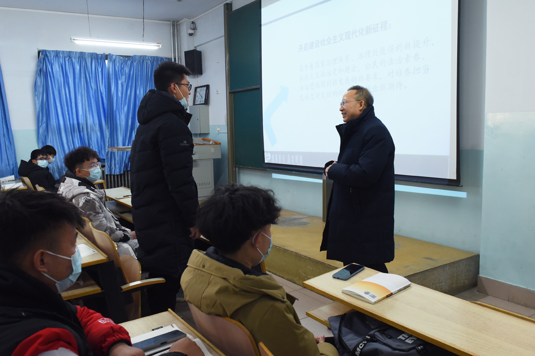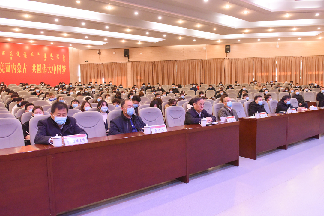 报告会前,张韶春旁听了马克思主义学院周虹老师讲授的题为“维护法律权威,助力新长征”的思想政治理论课。课后,张韶春与同学们亲切交流,寄语广大同学深入学习贯彻习近平法治思想,自觉践行社会主义法治理念,切实做学法、懂法、信法、守法、护法的合格公民;主动接受思想政治理论课教育,打好马克思主义基本理论功底,学好习近平新时代中国特色社会主义思想,大力弘扬社会主义核心价值体系,树立正确的历史观、民族观、国家观、文化观,铸牢中华民族共同体意识,为建设亮丽内蒙古、共圆伟大中国梦贡献智慧和力量。