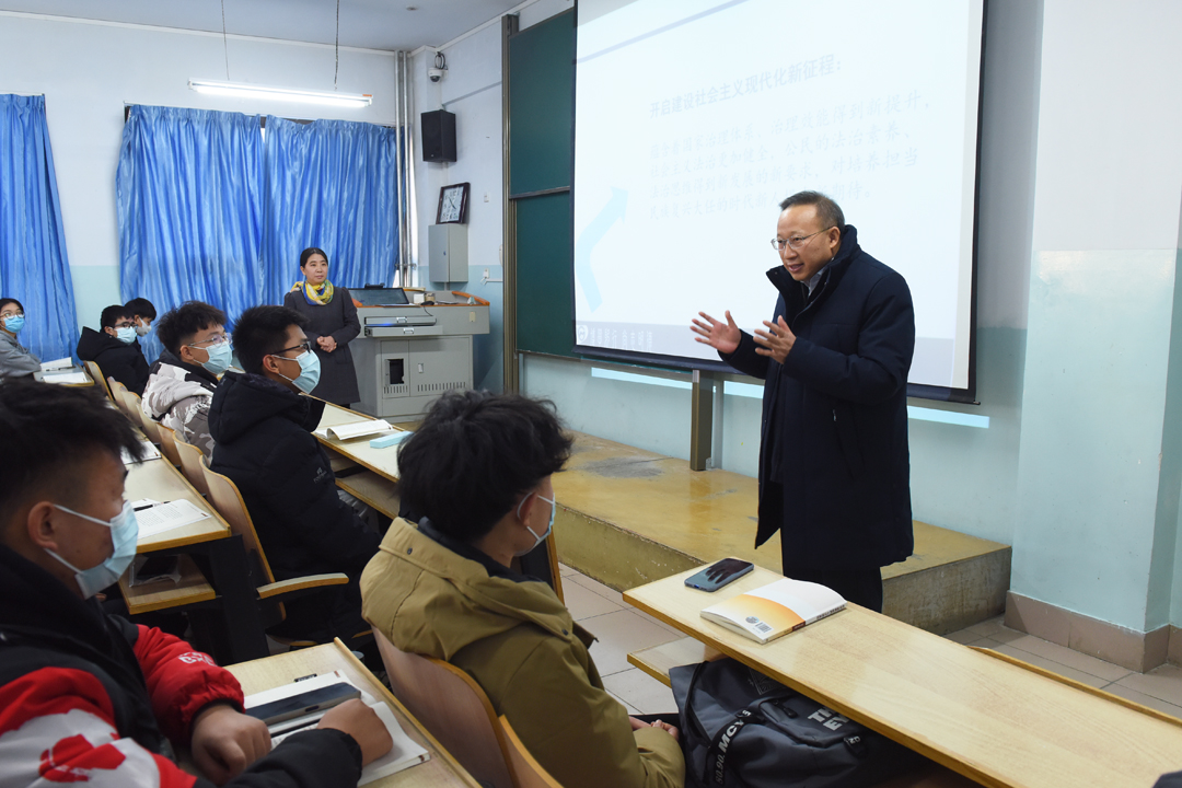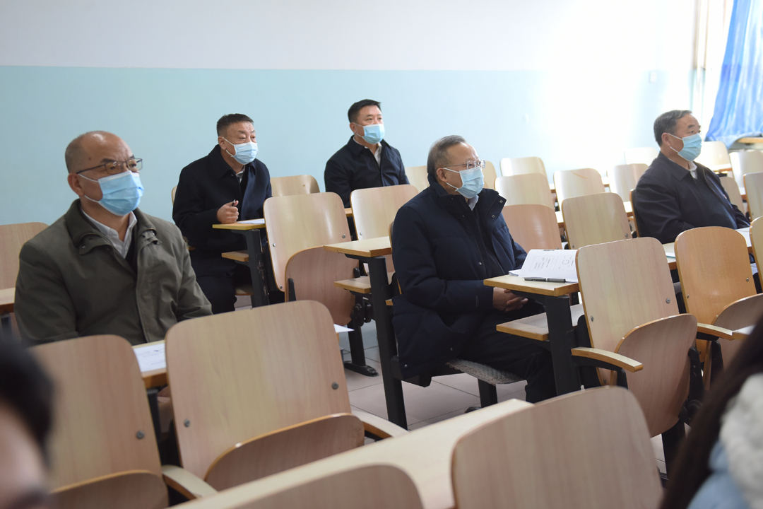 12月18日下午,自治区党委常委、秘书长,自治区常务副主席张韶春来我校作形势政策报告,并随堂听取了思想政治理论课。